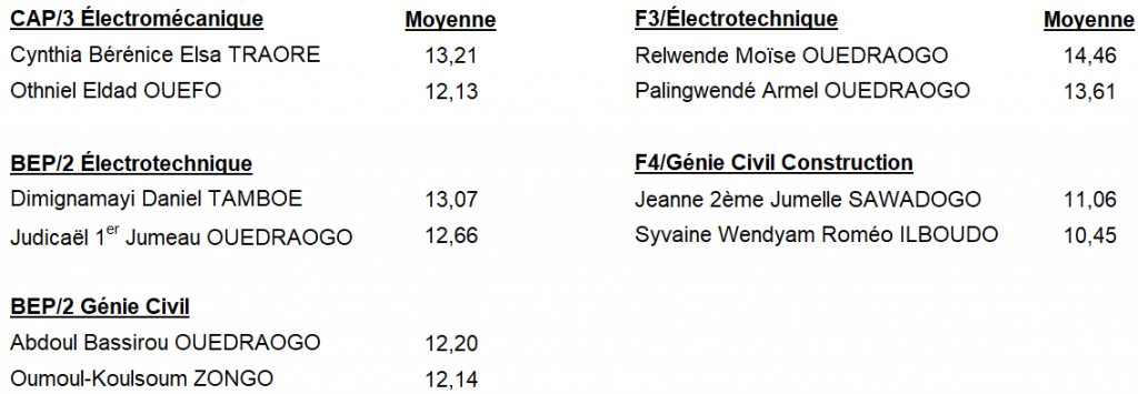 Depuis plusieurs années déjà, Lancy Coopération Afrique récompense par un prix les élèves méritants ayant eu la meilleure moyenne aux examens. L’année dernière les lauréats étaient les suivants :